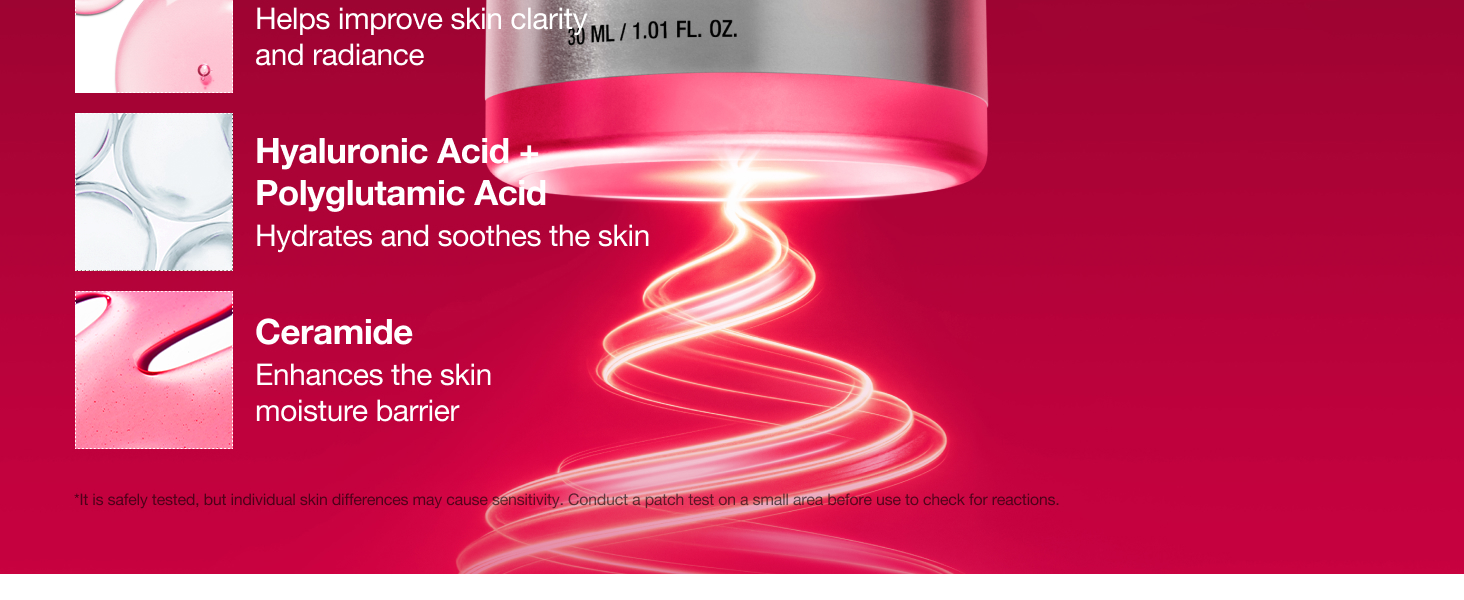 - KOREAN GLASS SKIN : Contenant 10 % de niacinamide, 4 % d’acide tranexamique et 2 % d’arbutine, un puissant trio d’ingrédients pour cibler la peau terne et les pores dilatés.