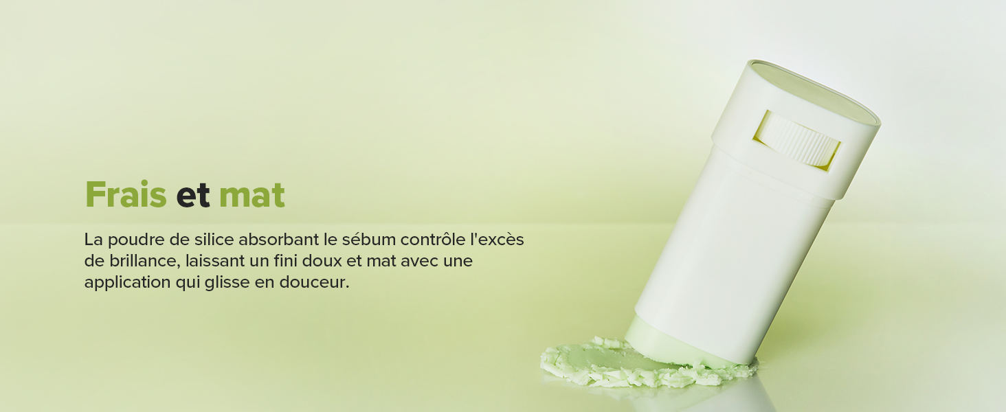 - Stick solaire mat séborégulateur. La poudre de silice séborégulatrice régule le sébum pour une meilleure adhérence et un fini mat et lisse, sans paquets. À base d’extraits d’armoise capillaire et de thé vert, elle contribue à lisser la peau tout en préservant son hydratation.